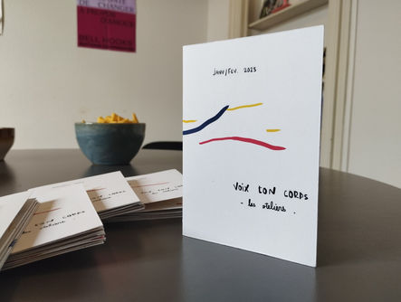 L'association "La Petite" à Toulouse propose les ateliers Voix Ton Corps pour renforcer sa confiance en soi, en collectif par l’expérimentation de pratiques artistiques. C'est dans ce cadre là que j'ai été invité en tant qu'artiste illustratrice à proposer un temps sur la session de janvier-février 2023 pour créer un objet graphique témoignant de ces instants.